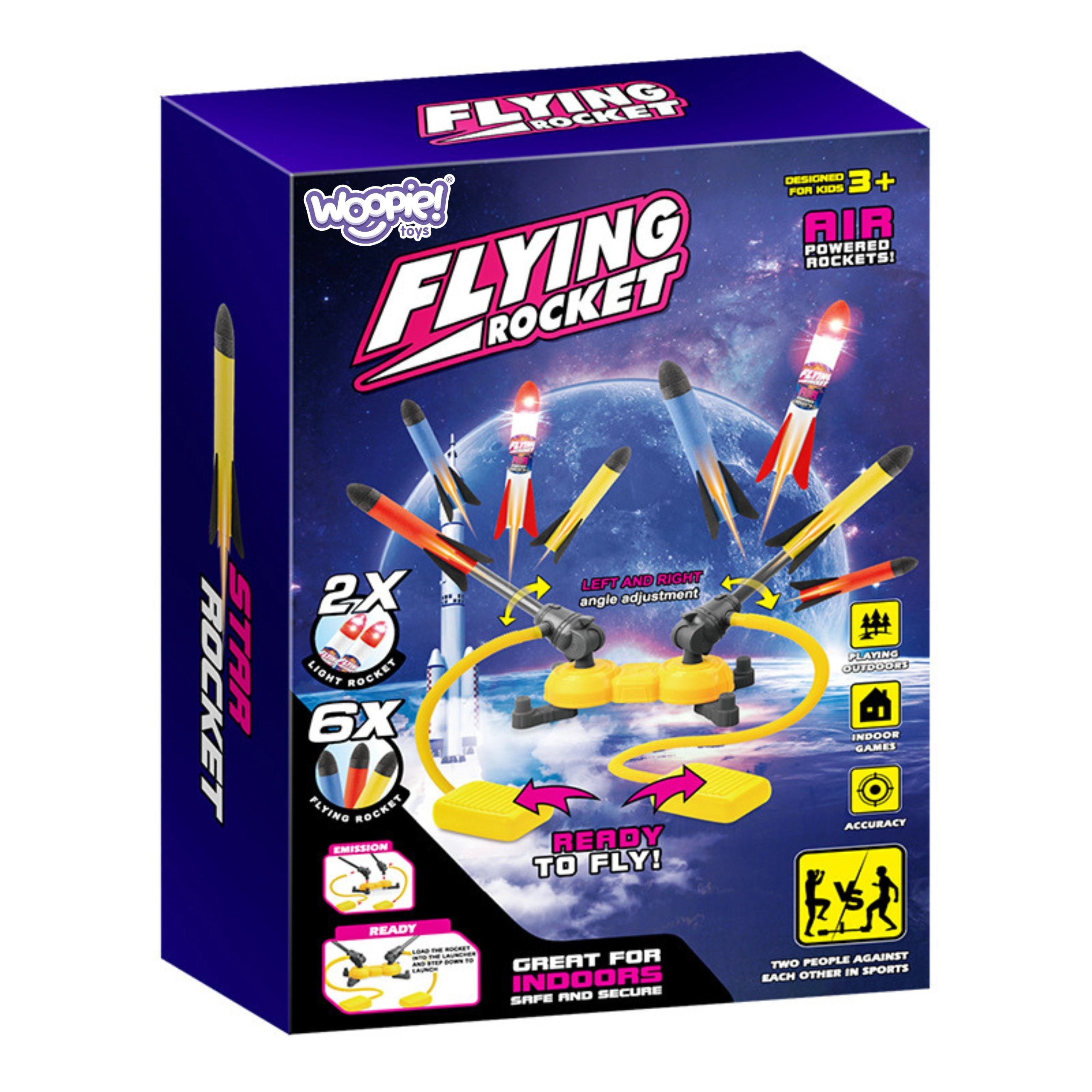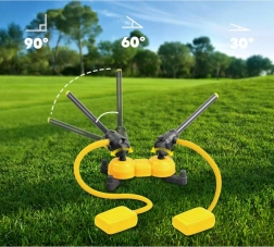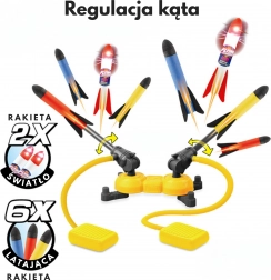 De dubbele schuimraketlanceerder is ideaal voor actieve pret in de tuin, het park of op de speelplaats. De raketten zijn licht, gemaakt van zacht schuim en veilig voor kinderen, terwijl ze bij elke lancering voor veel spanning zorgen. Verstelbare lanceerders maken een vrije instelling van de hoek (van 30° tot 90°) en de schietrichting mogelijk.