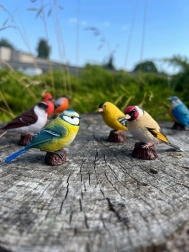Elk figuur is zorgvuldig met de hand geschilderd om de kleuring en kenmerken van de putter natuurgetrouw weer te geven.