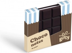 Ontdek het originele Gifty notitieboek geïnspireerd op chocolade, dat niet alleen opvalt door het ontwerp met een afgebeten hoek, maar ook door de praktische eigenschappen als stijlvol notitieblok met onbedrukte witte bladen.