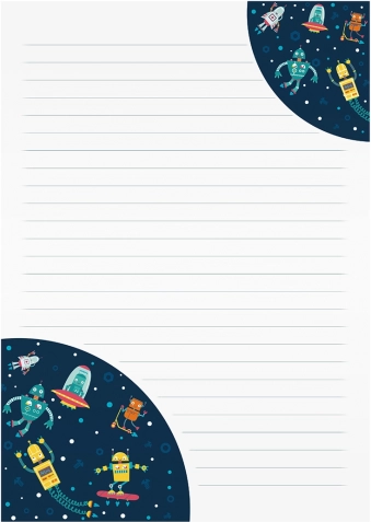 Ontdek de wereld van schrijven met onze briefpapierset Ruimte. Bovendien wordt elke brief verrijkt met vrolijke ruimtethema’s en stijlvolle enveloppen geïnspireerd door robots en raketten.