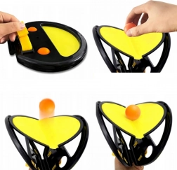 Het is eenvoudig! Plaats de bal in het speciale "vangapparaat" en open het krachtig zodat de bal de lucht in wordt geschoten. Je partner vangt hem met zijn vangapparaat met precisie. Wie vangt er meer? Wie verzint de interessantste worpen? Alleen je verbeelding beperkt je!