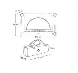 Dit product bevat ook een praktische transporttas die het bedje beschermt tegen vuil en het dragen en opbergen vereenvoudigt. Er is ook een mobiel vak beschikbaar voor reserve luiers, speelgoed of doekjes.