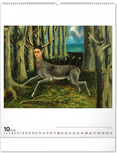Ontdek de magie van Frida Kahlo’s kunst met deze grootformaat wandkalender voor 2026. Bevat twaalf iconische schilderijen van de Mexicaanse kunstenares, symbolen van moed en unieke kunst.