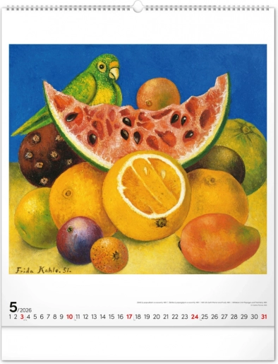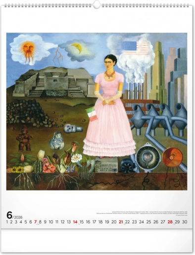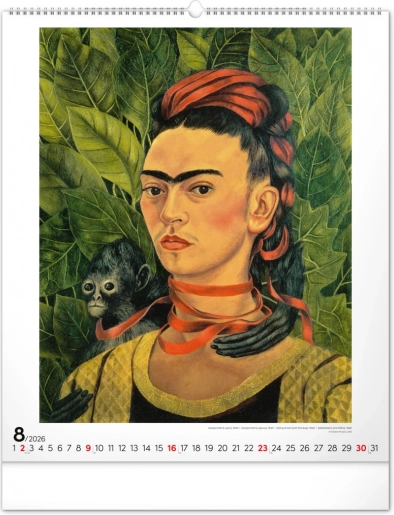 Deze wandkalender biedt niet alleen praktisch nut, maar ook een esthetische beleving met werken van Frida Kahlo.