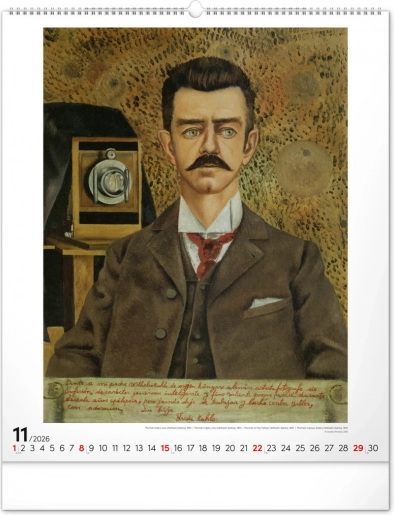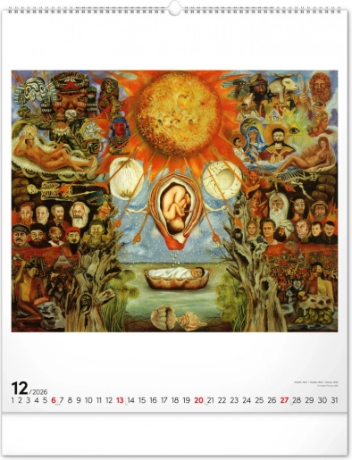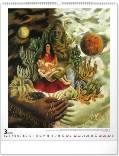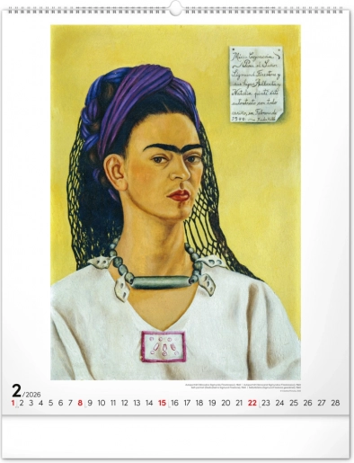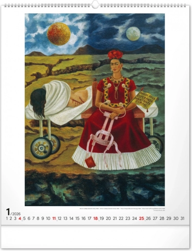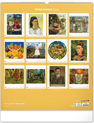 Grootformaat Frida Kahlo-kalender voor 2026 met 12 iconische schilderijen. Ideaal voor kunstliefhebbers.