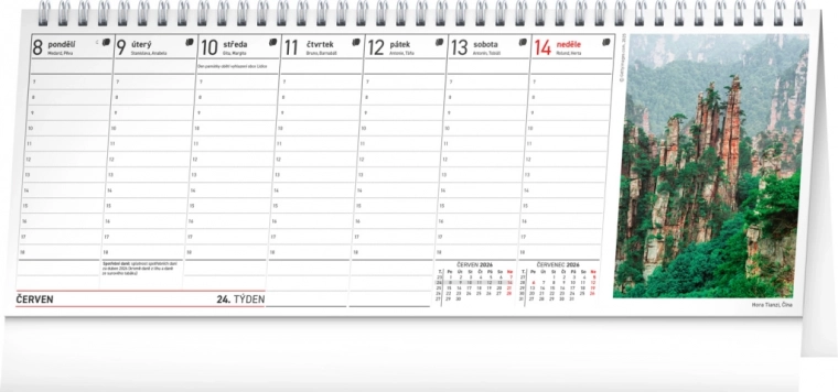 Kalender voor het jaar 2026 die functionaliteit en esthetiek harmonieus verenigt. Bevat een wekelijkse Tsjechische kalender met ruimte voor notities, namen, feestdagen en belangrijke dagen.