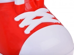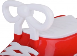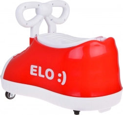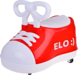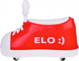 De rode rijdende sneaker Elo valt op door zijn unieke uiterlijk, dat meteen de aandacht trekt. Het stijlvolle ontwerp in de vorm van een grote rode sneaker met de opschriften ELO :) en OLE :) tovert een glimlach op elk gezicht.