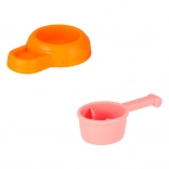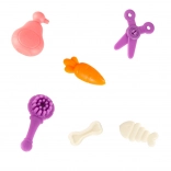 De set bevat speelgoed kappersaccessoires en speelgoedvoedsel zoals kommetjes, ham, bot, vis en wortel. Alle onderdelen zijn gemaakt van veilig plastic en bedoeld voor kinderen vanaf drie jaar.