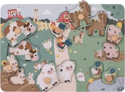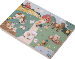 Houten geluidspuzzel met boerderijdieren die hun kenmerkende geluiden laten horen zodra ze op de juiste plek worden gelegd. Perfect vermaak voor kinderen en bevordert hun verbeeldingskracht en motorische vaardigheden.