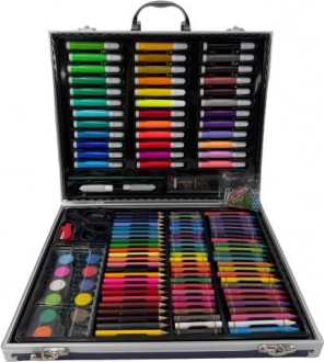 De knutselkoffer met ruimtethema is perfect ontworpen voor kinderen die van creëren houden. Hij bevat diverse knutselmaterialen die zorgvuldig zijn geordend, zodat elk item zijn plek heeft en de koffer netjes blijft.