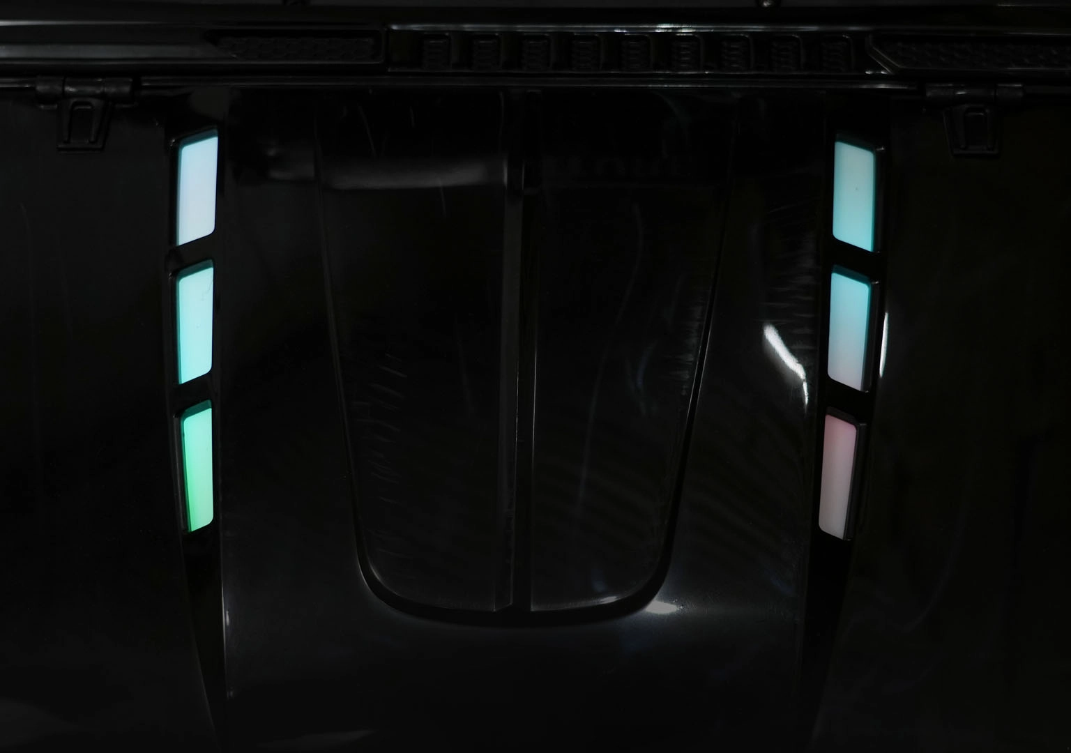 Audiopaneel met USB/AUX/MP3/Bluetooth, geluiden en claxon op het stuur, voorste LED-koplampen en een verlichte motorkap voor stijl en zichtbaarheid.