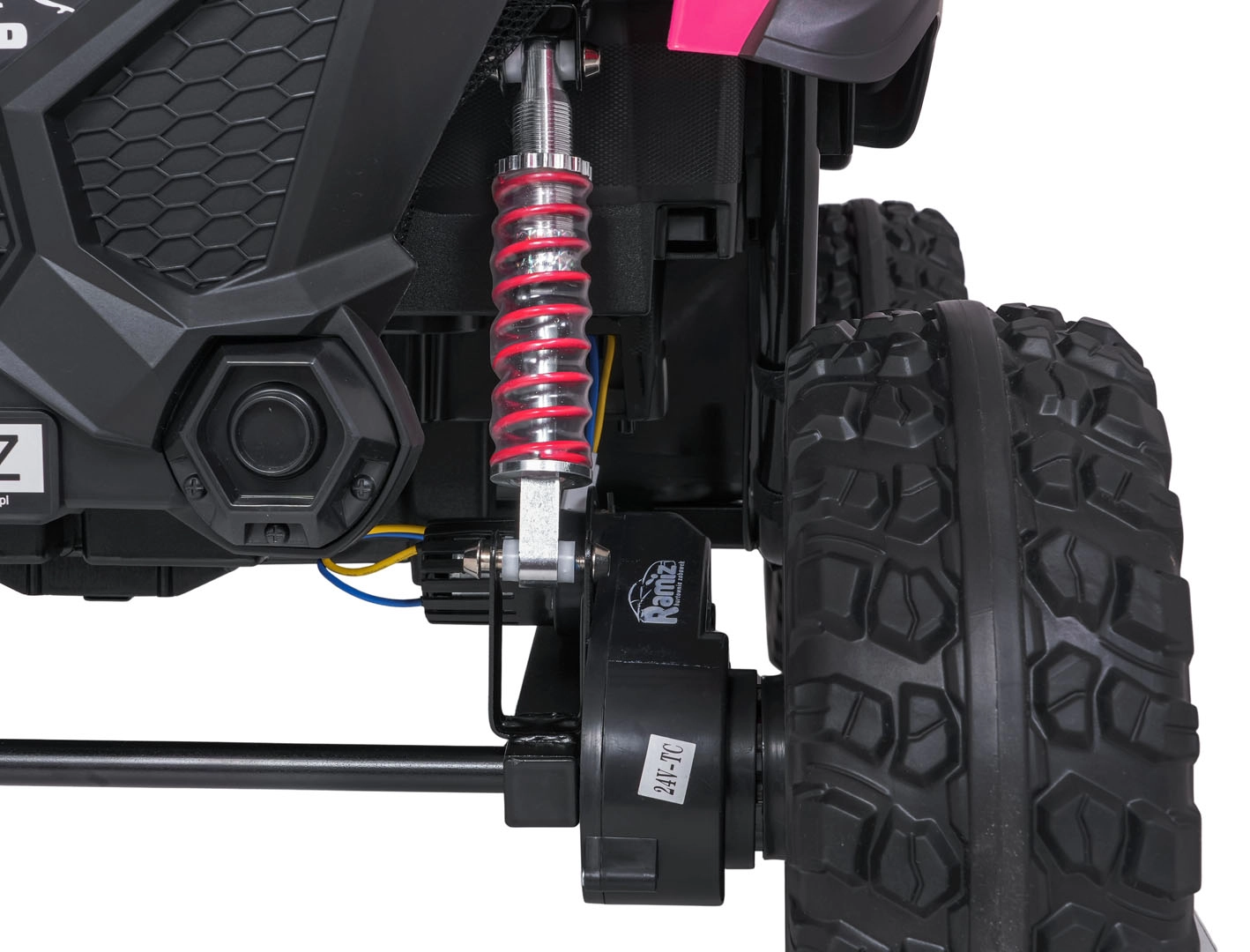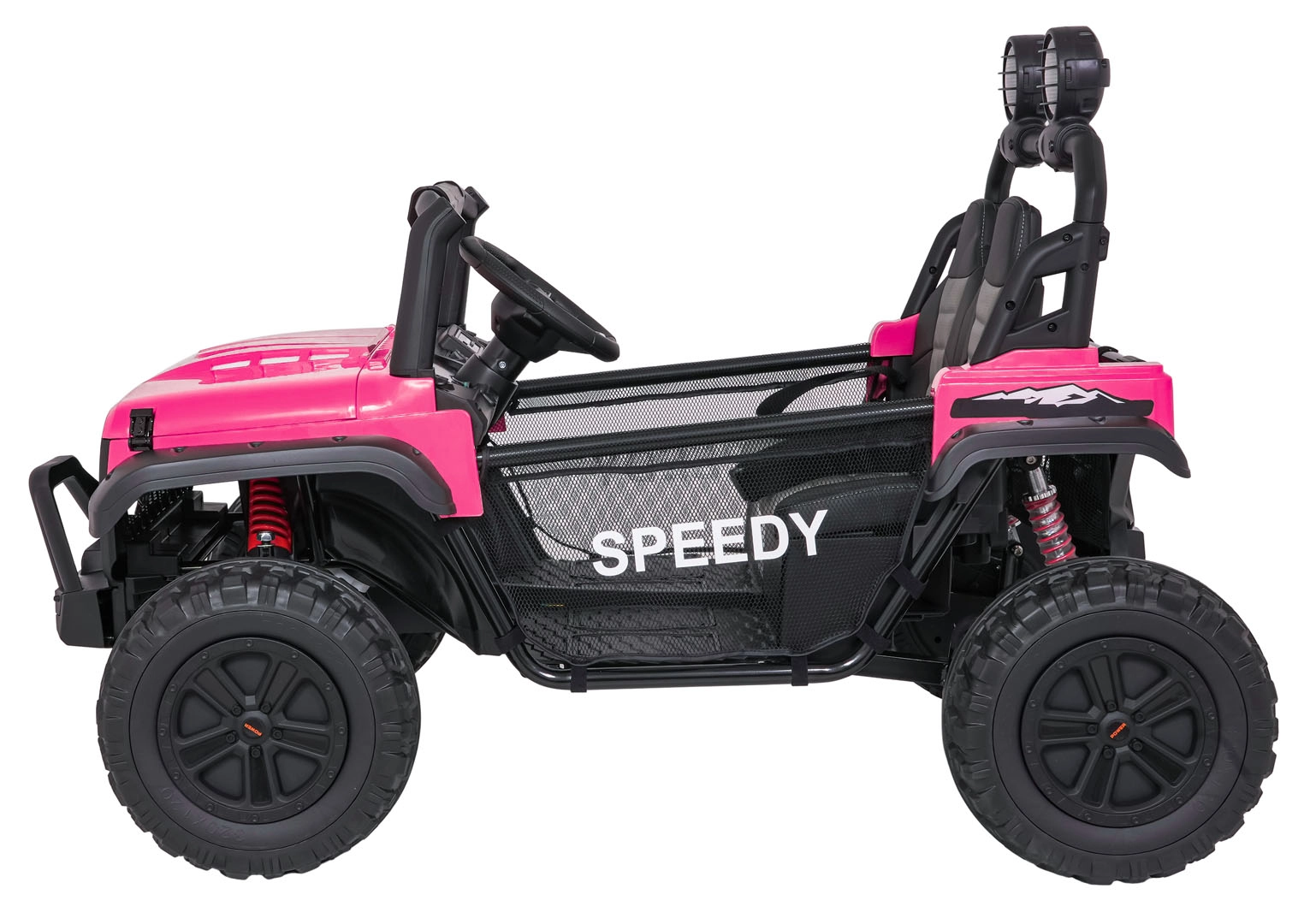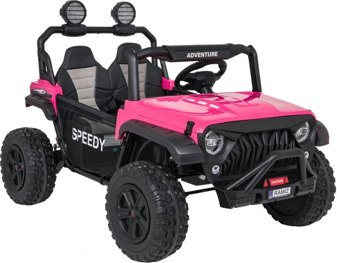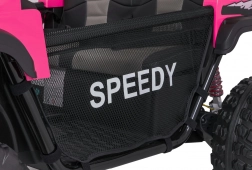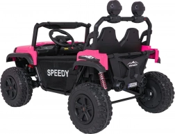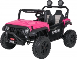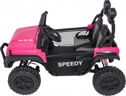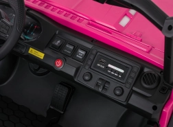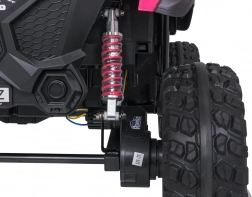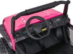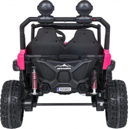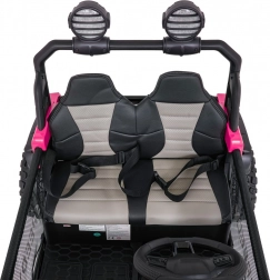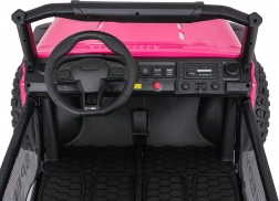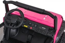 De roze PASSION 4x4 is een robuuste offroad kinderauto die krachtige prestaties, hoog comfort en veiligheid combineert. Vier 200 W motoren kunnen oneffenheden aan, verstelbare achterdempers verbeteren de stabiliteit en de grote EVA-wielen 31 × 12 cm rollen stil en zeker over diverse ondergronden. De tweezits stoel van eco-leer met veiligheidsgordels biedt comfort, ook tijdens langere ritjes.