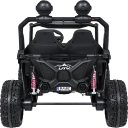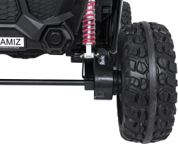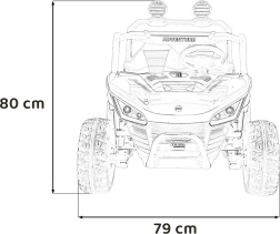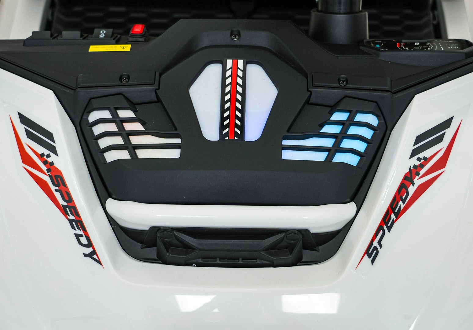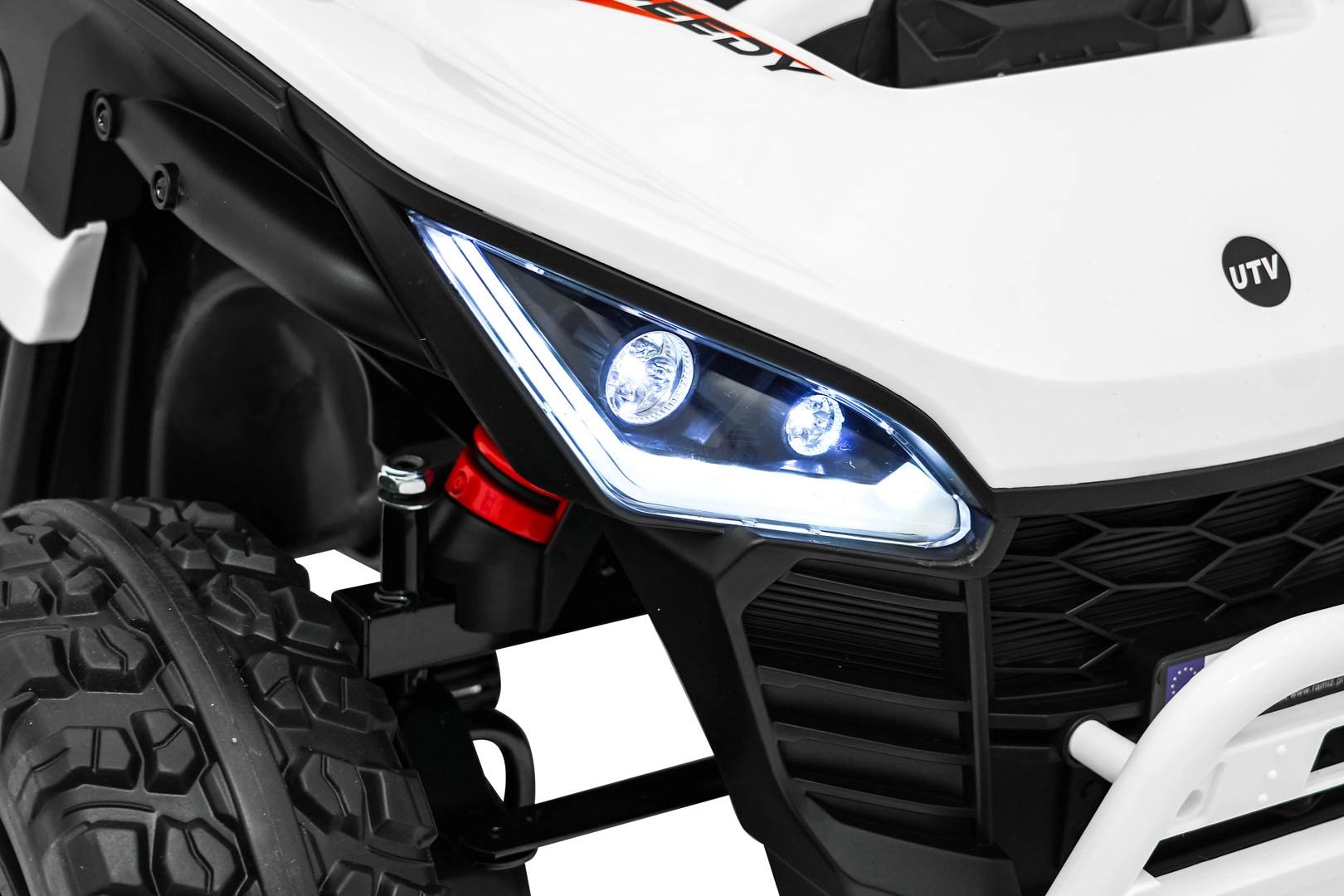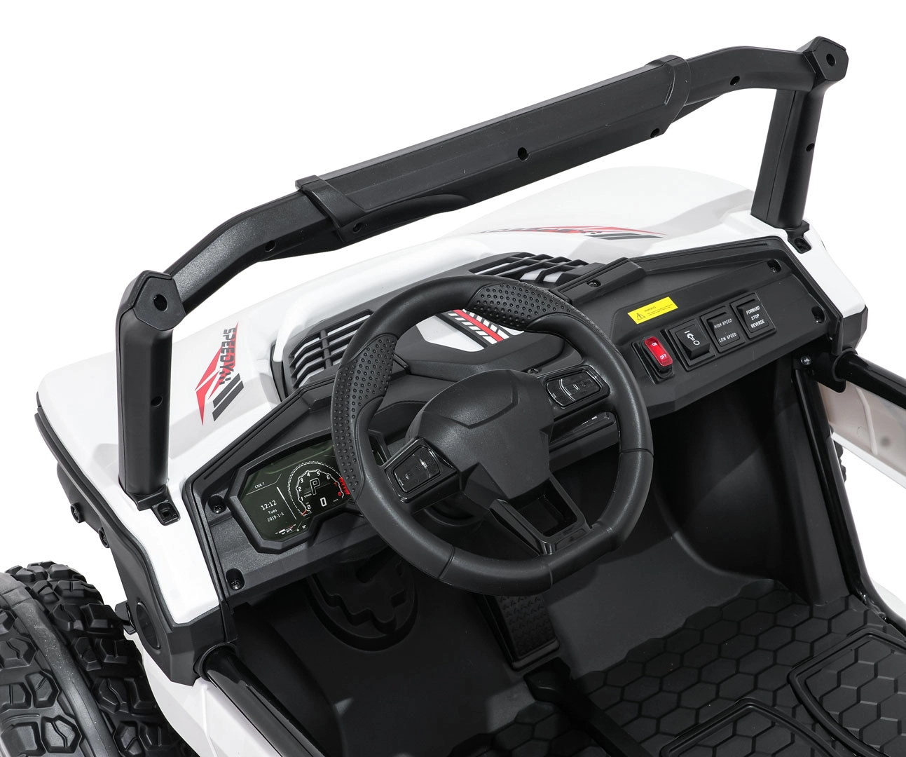 Deze robuuste kinderbuggy SPEEDY brengt echt offroad-avontuur. Vier sterke motoren van 4×200 W, gevoed door een 24 V set (2×12 V 10 Ah), zorgen voor een soepele start, twee snelheden en rijden vooruit/achteruit. Grote EVA-schuimbanden (31×12 cm), in combinatie met achterste verstelbare schokdempers en een hoge bodemvrijheid, bieden stabiliteit, grip en comfort op oneffen terrein.