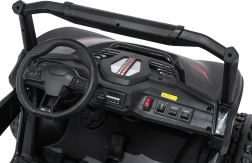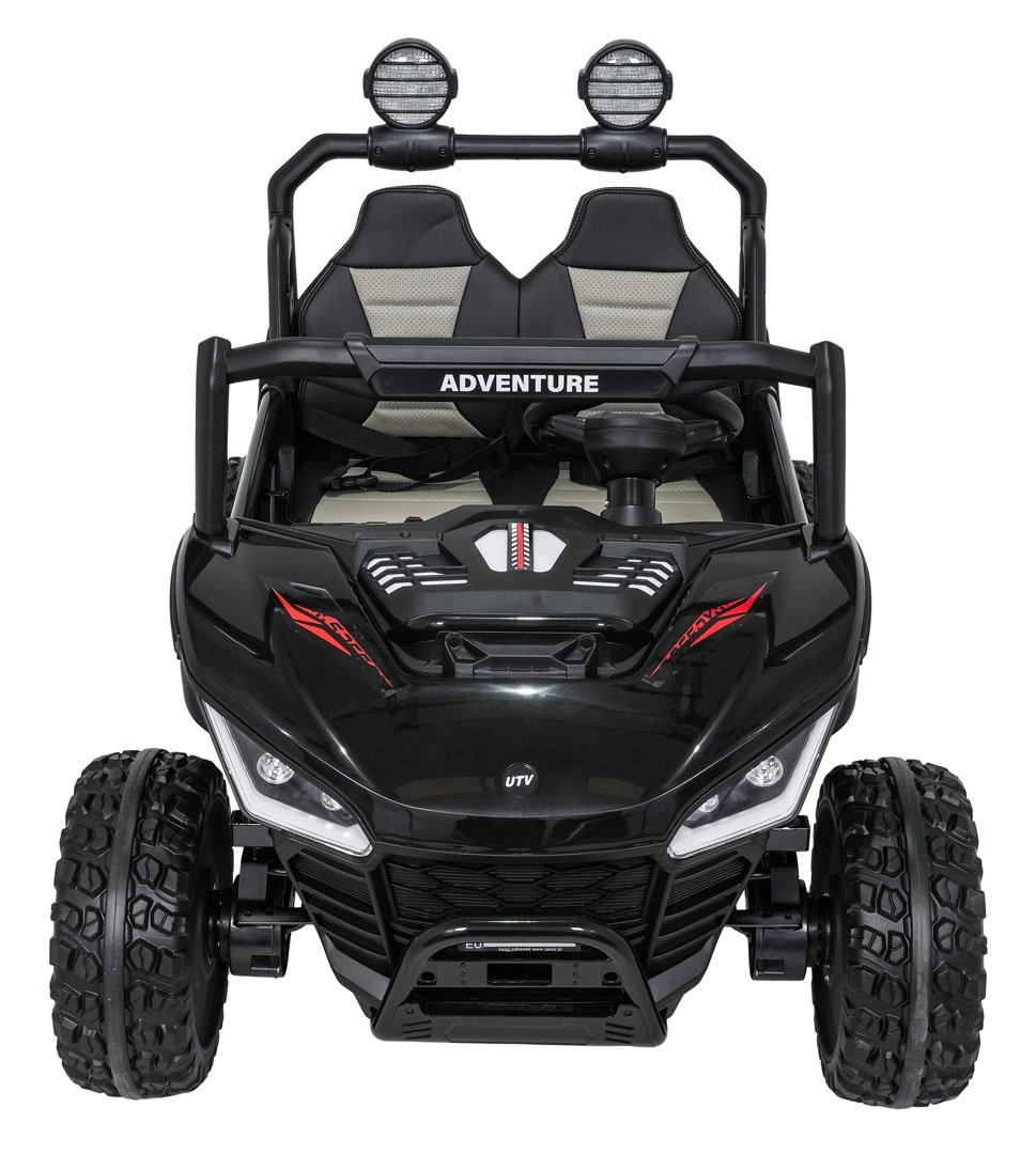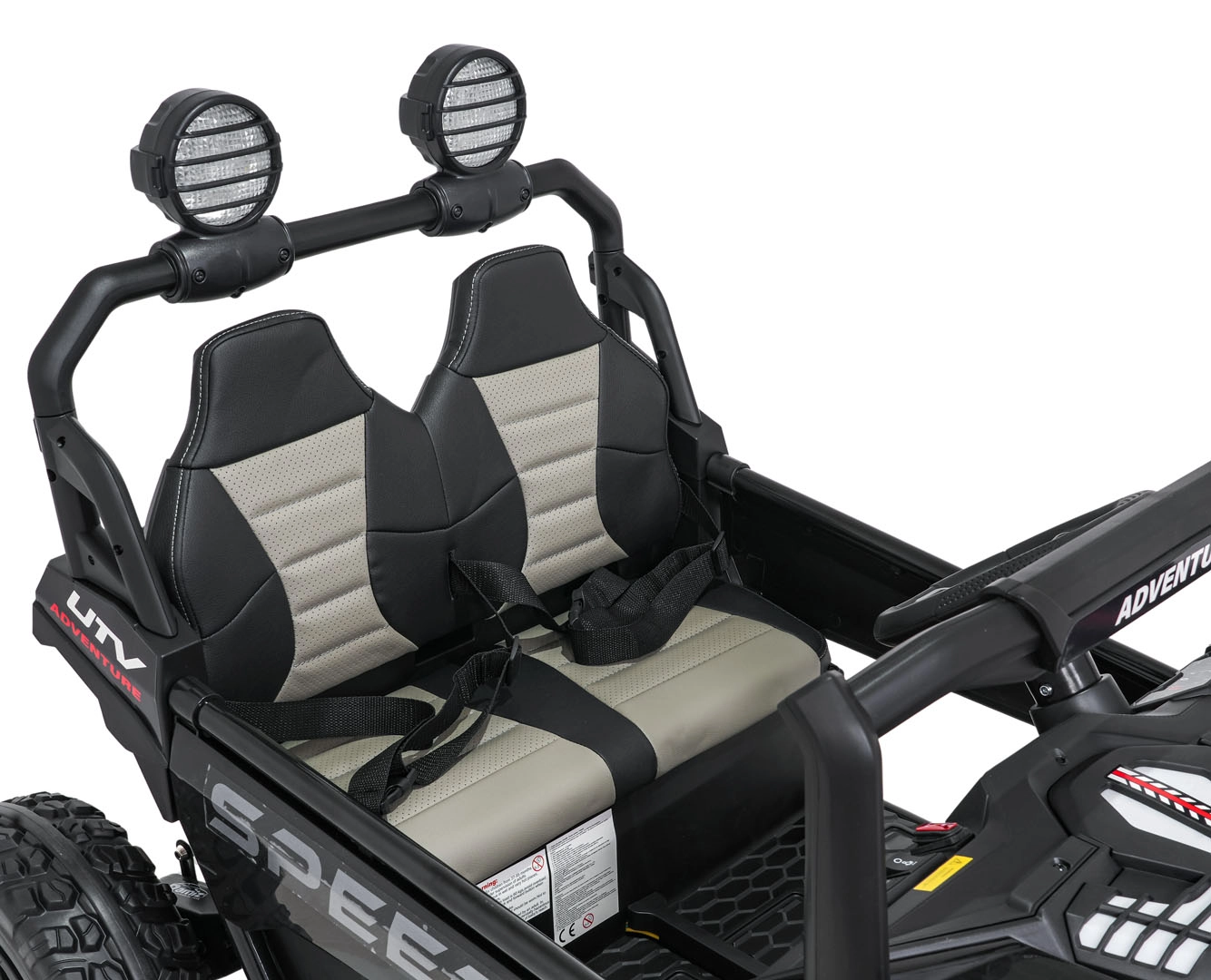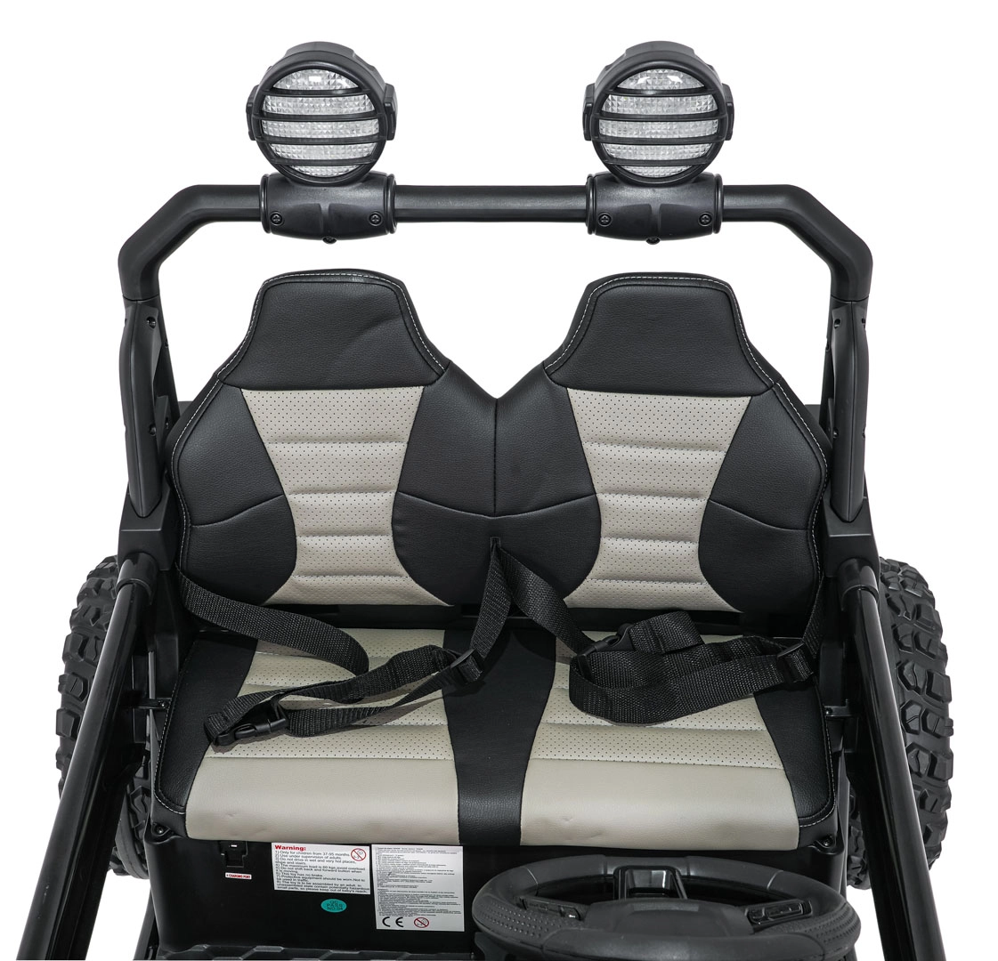 - Comfort en veiligheid: dubbele eco-lederen zetel 52×21×32 cm, veiligheidsgordels, soepele start, ouderlijke controle.