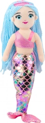 Deze charmante pluche zeemeermin valt niet alleen op door haar formaat, maar vooral door haar esthetische en magische uitstraling. De staart is gemaakt van materiaal dat glinsterende schubben met een holografisch effect nabootst. Lange, blauwe haren in de vorm van koordvlechtjes creëren een betoverend figuur als uit een onderwaterkoninkrijk.