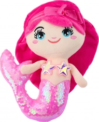 De pluchen zeemeermin is voorzien van grote, geborduurde ogen, een glimlachend gezicht en roze haar versierd met een strik. Haar indrukwekkende staart met glitters verandert van glanzend naar mat, wat kinderen plezier geeft en hun tastzin en verbeelding stimuleert.
