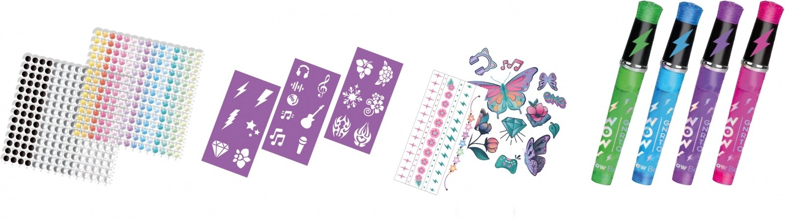 De set voor het maken van glinsterende tatoeages biedt tal van mogelijkheden om je huid te versieren met unieke en sprankelende designs: