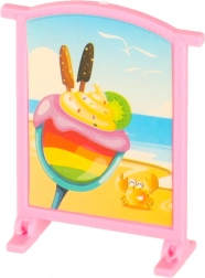 Inclusief een uitgebreide set accessoires: tafeltjes, stoeltjes, parasol, reclamebord en tal van kleine aanvullingen zoals bekers, glaasjes, ijsjes, kannetje en dienblad. De lichte en duurzame kunststof constructie is perfect voor dagelijks spelen thuis en onderweg.