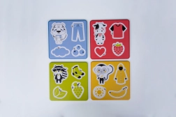 Dankzij het doordachte ontwerp met kleine uitsparingen is het hanteren van de stukjes ook voor kleine kinderhanden eenvoudig. De set is ideaal voor de eerste puzzelactiviteiten en voor de ontwikkeling van fijne motoriek en geduld. De variërende moeilijkheidsgraad van de afzonderlijke borden houdt de aandacht vast en motiveert tot verder ontdekken.