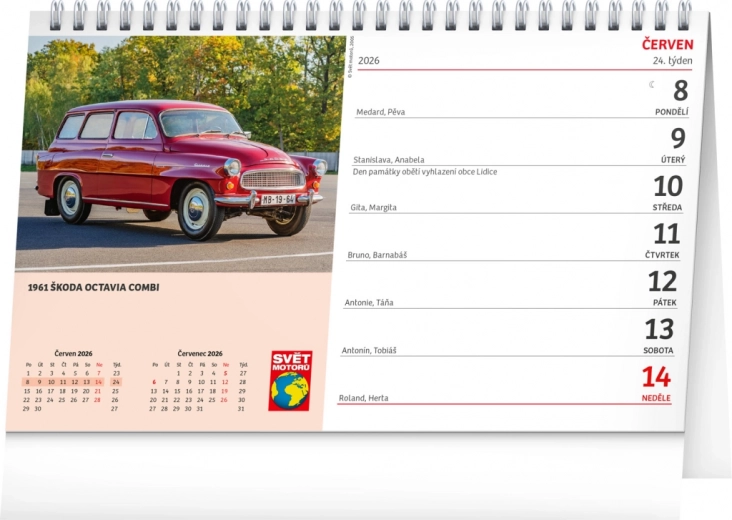 Bureaukalender Svět motorů 2026, presenteert de nationale autowereld. Ideaal cadeau voor autoliefhebbers.