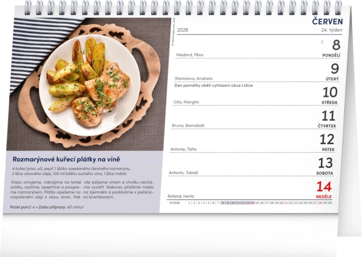 Ontdek inspiratie voor uw huiselijke keuken met deze bureaukalender vol met 53 traditionele recepten die onze grootmoeders eren. De kalender bevat Tsjechische namen, feestdagen, gedenkdagen en maanfasen.