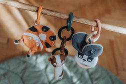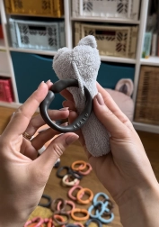 Verbinding Ringen OČKO zijn ontworpen met de nadruk op veiligheid en multifunctioneel gebruik. Ze maken eenvoudige bevestiging van speelgoed, luiers of kleine dingen aan de kinderwagen mogelijk. Met meerdere ringen kun je een leuke ketting maken voor spel en bijten.