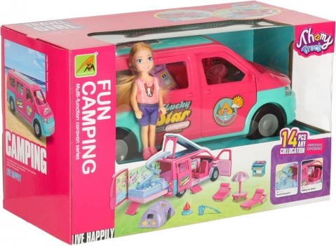 Kampeer-caravan voor poppen is de ideale aanvulling voor zomerse avonturen. Biedt een breed scala aan accessoires voor plezier in de buitenlucht met je favoriete poppen.