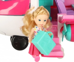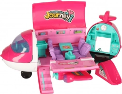 Roze vliegtuig voor poppen 2-in-1 met accessoires roze
