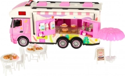Deze set bevat verschillende accessoires die kinderen in staat stellen om echt kamperen na te bootsen. Hierbij horen een tafel, stoelen, mini-keukengerei en stickers die een persoonlijk tintje geven. Kinderen kunnen ook een reclamebanner opzetten en een tuinparasol neerzetten, wat zorgt voor nog meer speelmogelijkheden.