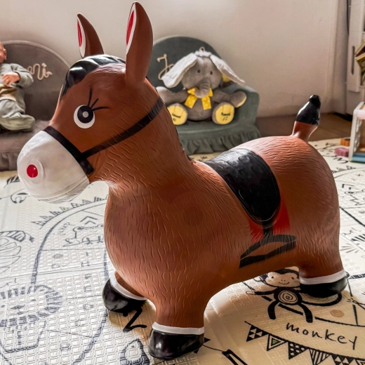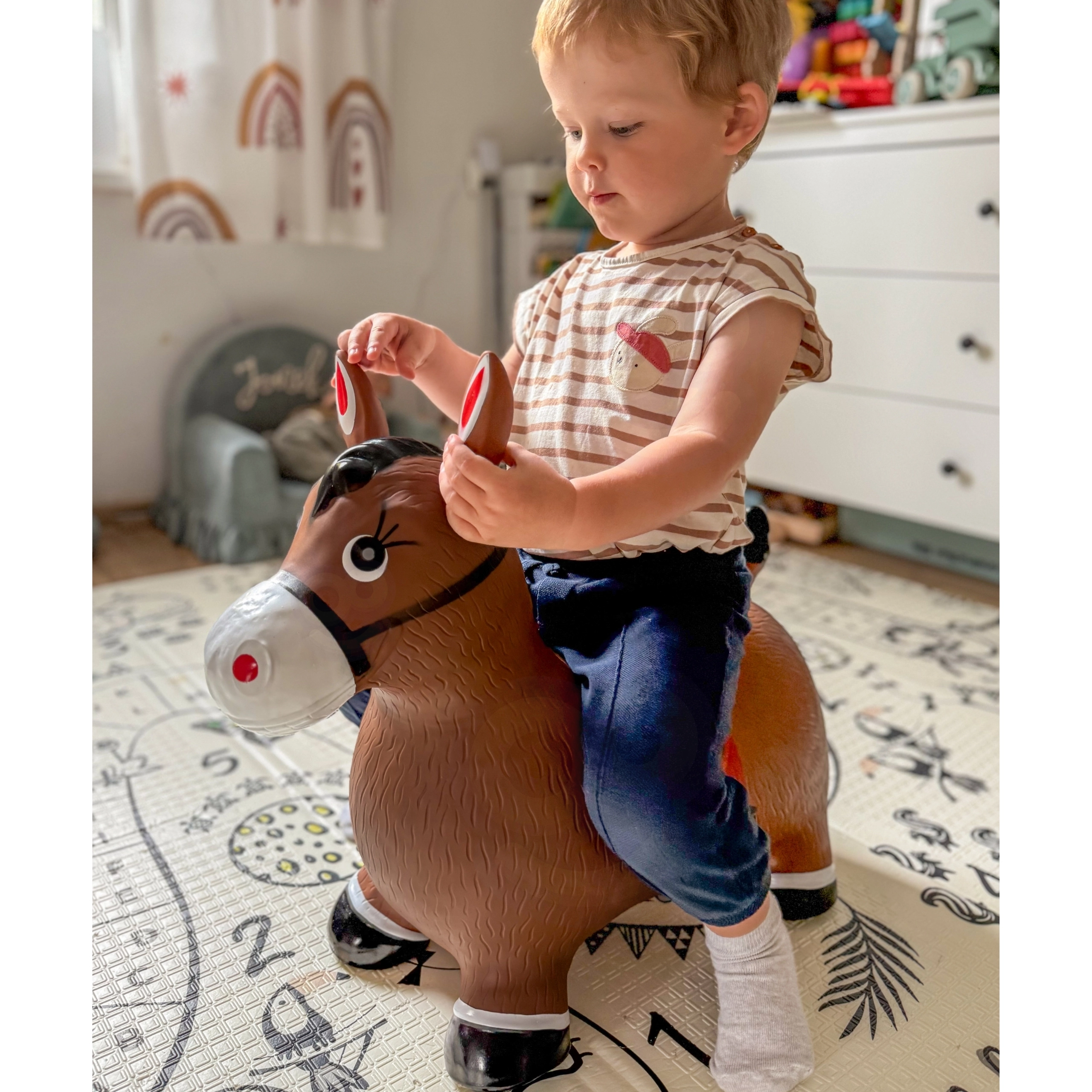 Het speelse design van het schattige bruine paardje met zadel motiveert tot spel en prikkelt de fantasie. Het maximale draagvermogen is 45 kg en de aanbevolen druk 0,3–0,4 bar zorgt voor de juiste veerkracht voor comfortabel springen. De verpakking bevat een praktische pomp, zodat het plezier direct na het uitpakken kan beginnen.
