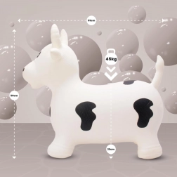 Ontdek de springkoe met zwart-witte vlekken, ideaal voor het vrijlaten van energie, het ontwikkelen van bewegingscoördinatie en het versterken van de beenspieren. Voor kinderen vanaf 12 maanden en met een maximale draagkracht van 45 kg. Deze koe is perfect speelgoed voor binnen- en buitengebruik.