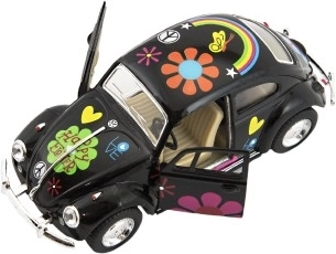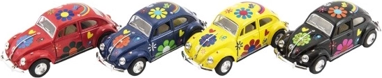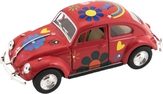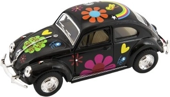 Reis terug naar de gouden tijd van de weg met het gedetailleerde model KINSMART VOLKSWAGEN Beetle. Dit metalen model van 13 cm valt op door de hoogwaardige afwerking, kleurrijke bloemmotieven en realistische details die zowel kinderen als volwassen verzamelaars zullen waarderen.
