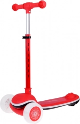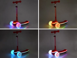 Lichte en stabiele kinderstep met balansbesturing (lean-to-steer), verstelbare stuurstang en drie wielen voor zekerheid tijdens het rijden. Valt op door LED-verlichting met 20 standen en 4 muzikale deuntjes, heeft een antislip, breed voetplatform en een achterrem voor veilig stoppen.