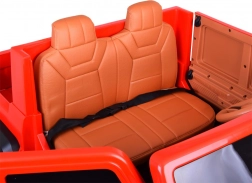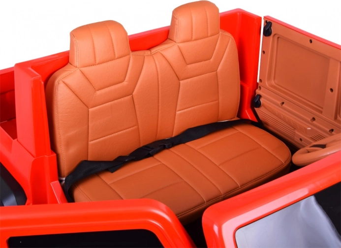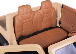 Binnenin vind je een brede tweezits zitting met eco-leren bekleding en een heupveiligheidsgordel. Openende deuren maken instappen eenvoudig en de grote achterlaadbak met neerklapbare klep is perfect voor speeltjes, snacks en kleine spulletjes voor onderweg.