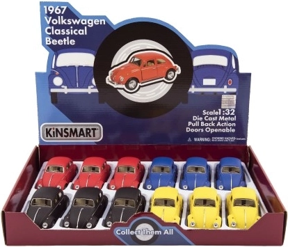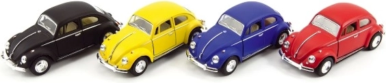 Stijlvol en levensecht model van de legendarische VOLKSWAGEN Beetle van het merk KINSMART, leuk voor zowel kinderen als verzamelaars. Dankzij de metalen carrosserie en het terugtrekmechanisme schiet het autootje vlot weg zodra je het loslaat. Compacte lengte van 13 cm, 4 kleurvarianten en hoogwaardige afwerking van metaal en kunststof. Geschikt vanaf 3 jaar.