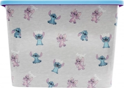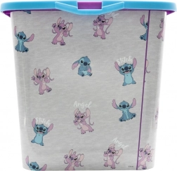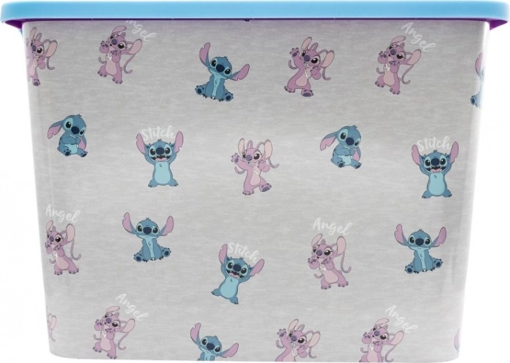 Praktische plastic opbergbox met motieven van de geliefde figuren Stitch en Angel. Ideaal voor veelzijdig gebruik, zoals het opbergen van speelgoed en bouwsets.