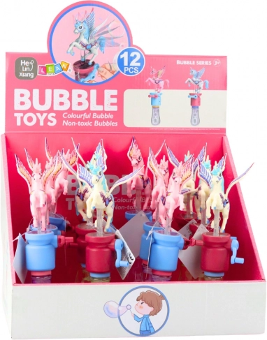 Zeepbellen met een eenhoorn-thema zijn niet alleen klassiek speelplezier, maar zorgen ook voor een magisch visueel effect! Dit unieke speelgoed van 23 cm hoog is uitgerust met een opwindmechanisme dat, wanneer je het draait, de vleugels van de eenhoorn laat bewegen, waardoor de indruk van vliegen ontstaat.