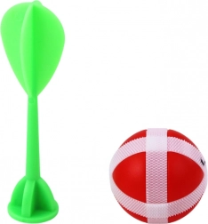 De set bestaat uit een donker dartbord met een diameter van 28 cm, een pijl en een bal, beide met een klittenbandpunt. Het bord heeft duidelijke nummering en kleurrijke zones, die niet alleen het leren en de reflexen verbeteren maar ook kunnen worden gebruikt bij het spelen binnen en buiten.
