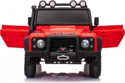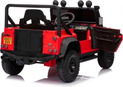 De stijlvolle elektrische kinderauto LAND ROVER Defender 110 SVX Concept valt op door het realistische design, de krachtige aandrijving 2x100 W en de 24 V 7 Ah accu. Voorzien van zachte EVA-banden, een kunstlederen zitje met veiligheidsgordels, soepele start, LED-verlichting en een modern audiopaneel met Bluetooth/USB/MP3. Ouders waarderen de 2,4 GHz afstandsbediening met Stop-knop voor maximale veiligheid.