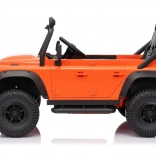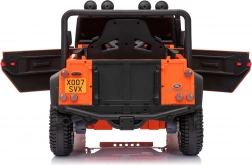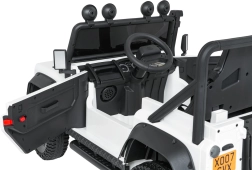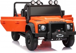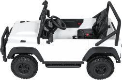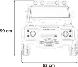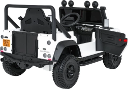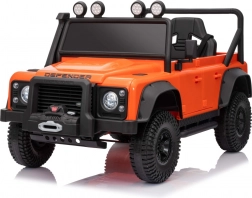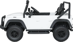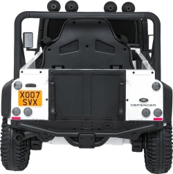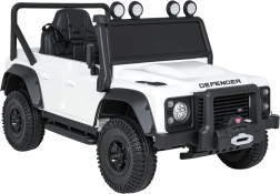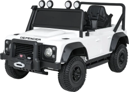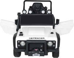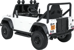 Het robuuste offroad-design, geïnspireerd op de iconische LAND ROVER DEFENDER, spreekt zowel jonge bestuurders als ouders aan. Twee krachtige motoren van 2x100 W in combinatie met een 24V 7Ah-accu zorgen voor een soepele rit; de functie Soft Start (rustig optrekken) en twee snelheden dragen bij aan veilige bediening. EVA-wielen 25×9 cm en voor- en achtervering garanderen comfort, zelfs op oneffen terrein.