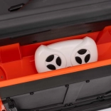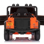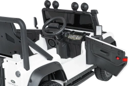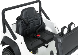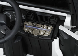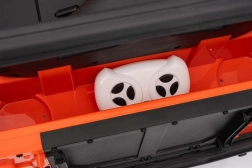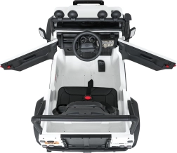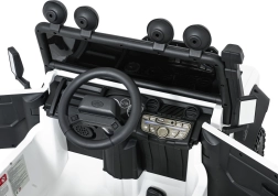 De auto is uitgerust met LED-verlichting (2 modi) met schakelaar, openslaande deuren, een beklede zitting van eco-leer met veiligheidsgordels en een duidelijk batterij-niveau-indicator. Het multimediapaneel met Bluetooth, USB, AUX en MP3 brengt favoriete muziek, met vooraf ingestelde melodieën en een claxon op het stuur.