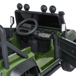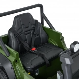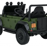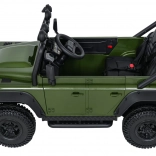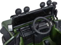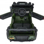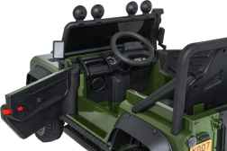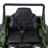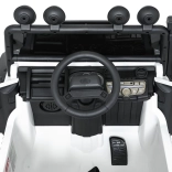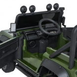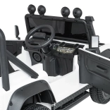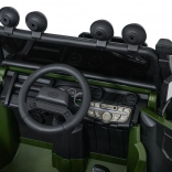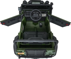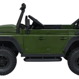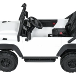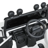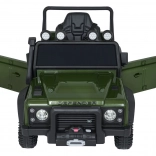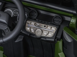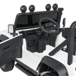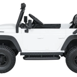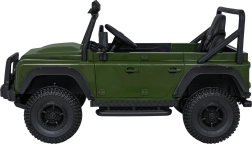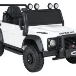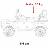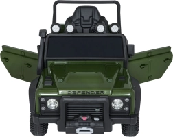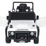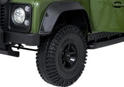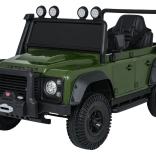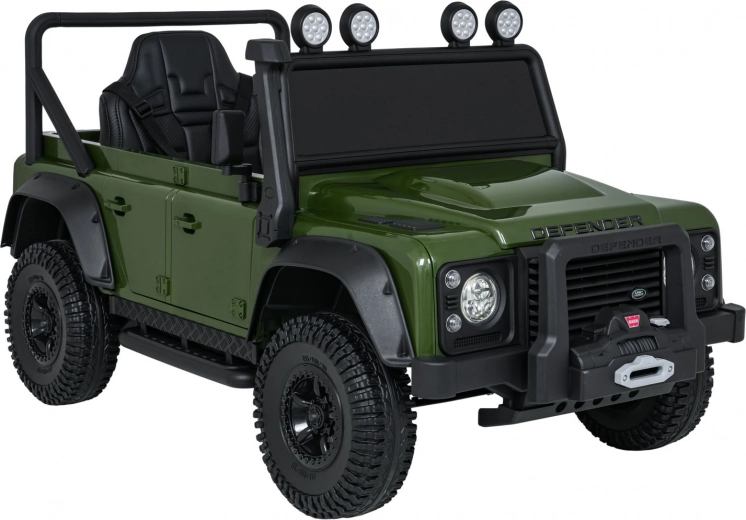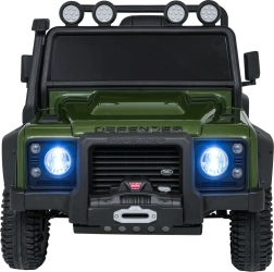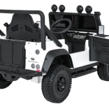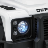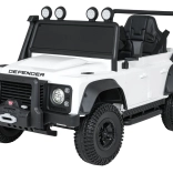Stijlvolle elektrische kinderauto LAND ROVER Defender 110 SVX Concept met krachtige aandrijving 2x100 W en een 24 V 7 Ah accu biedt een soepele start, comfortabel rijden op EVA-wielen en veiligheid dankzij de 2,4 GHz afstandsbediening met STOP. Verder met LED-verlichting, een luxe eco-lederen zitje met gordels, een uitgebreid audiopaneel met Bluetooth/USB/AUX en te openen deuren voor een realistische ervaring.