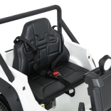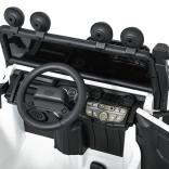 Ouders houden de veiligheid en controle in handen dankzij de 2,4 GHz afstandsbediening met drie snelheden en de STOP-veiligheidsknop. Kinderen genieten van favoriete muziek via Bluetooth, USB en AUX; claxon en voorgeprogrammeerde melodieën zijn inbegrepen. Een praktische achterste opbergruimte en te openen deuren maken het geheel comfortabel en leuk.