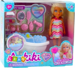 De Set Mini Pop Ankiki met Bad is een geweldige keuze voor creatief en educatief spel. Geschikt voor kinderen die willen genieten van plezier tijdens het badderen en verzorgen. De Ankiki-pop draagt kleurrijke jurkjes en heeft schattig blond haar, wat de verbeeldingskracht van kinderen stimuleert.