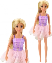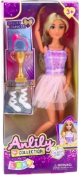 De pop Anlily Ballerina in Jurk is 30 cm hoog en gemaakt van veilig en duurzaam materiaal. Haar zachte gelaatstrekken en lang blond haar maken het mogelijk om creatieve kapsels te maken. In de set zitten een gouden beker, roze balletschoentjes en een haarband die de dansoutfit van de pop perfect completeren.