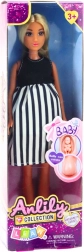 De pop Anlily Zwanger is een geweldige keuze voor het spelen van realistische familiescènes. Gekleed in een elegante zwart-wit gestreepte jurk en met een zichtbaar buikje is ze ideaal voor de ontwikkeling van de verbeelding en empathie van kinderen.