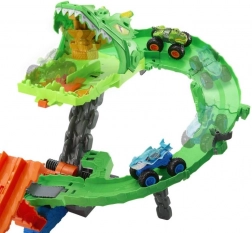 Baanset met drakenhindernis en wissel, dubbele launcher, 2 monstertrucks (Great Bite, Rageasaur)