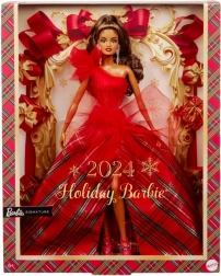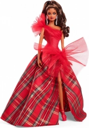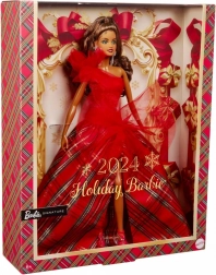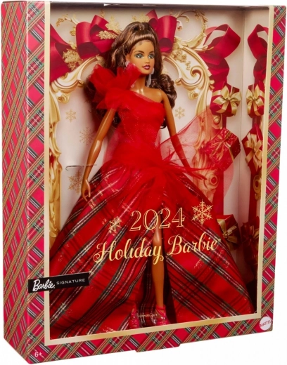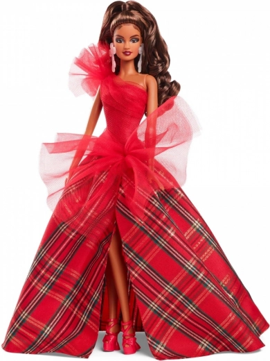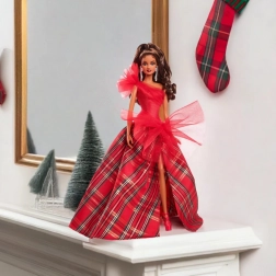 De feestelijke Barbie 2024 draagt een indrukwekkende felrode corset jurk met één schouder, prachtig gecombineerd met een volumineuze baljurk in klassiek ruitjespatroon. Grote tule accenten geven de klassieke stijl een moderne twist, terwijl opvallende oorbellen de totale elegantie benadrukken. De pop is verpakt in een doos die ideaal is om te presenteren, wat haar tot een geweldig cadeau maakt voor verzamelaars of als een uniek onderdeel van feestelijke decoraties.
