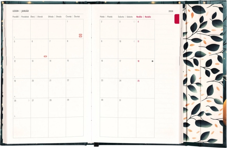 Voorzien van maandoverzichten die het plannen van langere periodes, zoals vakanties of schoolvakanties, vergemakkelijken. Deze agenda bevat ook een overzicht van Tsjechische en Slowaakse feestdagen en naamdagen, wat helpt bij een betere organisatie van je vrije tijd.
