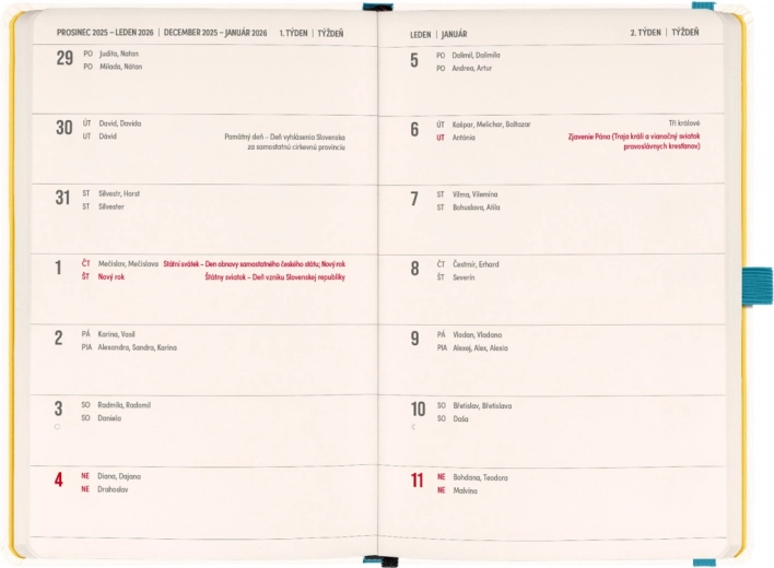 PLANBOOK Herbář 2026 is de ideale oplossing voor iedereen die planning en notities op één plek wil hebben. De eerste helft bevat een veertiendaags horizontaal kalendarium met Tsjechische en Slowaakse feestdagen, wat het plannen vergemakkelijkt. De tweede helft biedt voldoende gelinieerde pagina’s voor notities, perfect voor creatief denken en projectplanning.